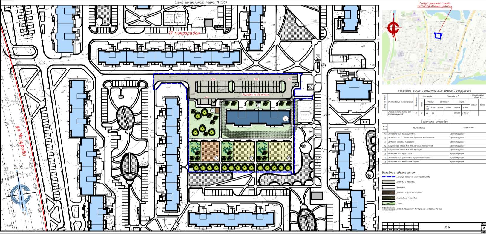 15. Проект застройки в квартале улиц Совесткая – Федюнинского – Лепешинского в г.Гомеле. Расчетно-планировочный квартал № 2. Возведение многоквартирного жилого дома № 4б по генплану.