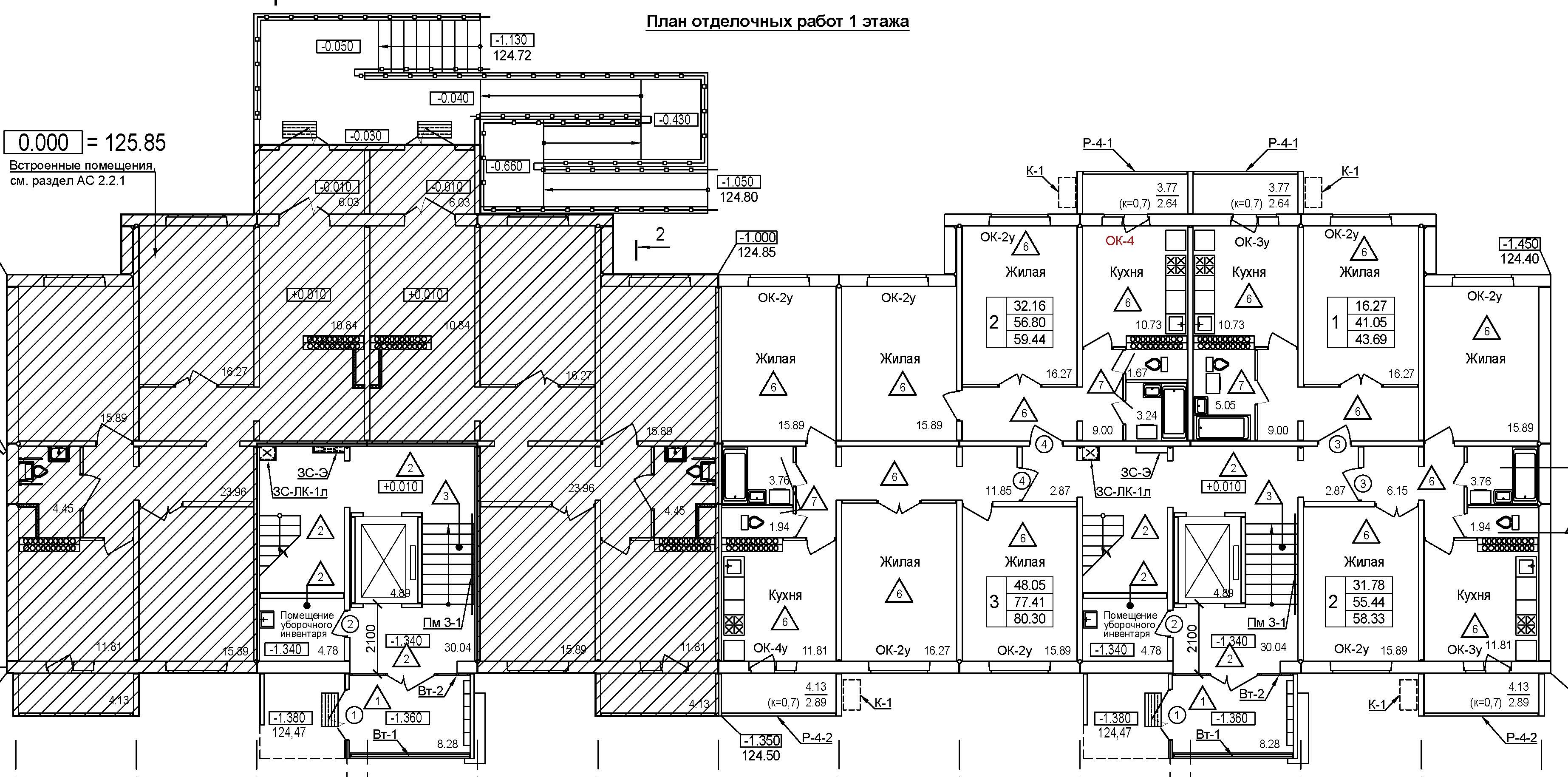 Конструктивная схема здания – крупнопанельный дом. Здание имеет прямоугольную конфигурацию. Запроектировано 76 квартир по 4 квартиры на этаже каждой секции со встроенными помещениями на первом этаже блок-секции «1». Набор квартир: