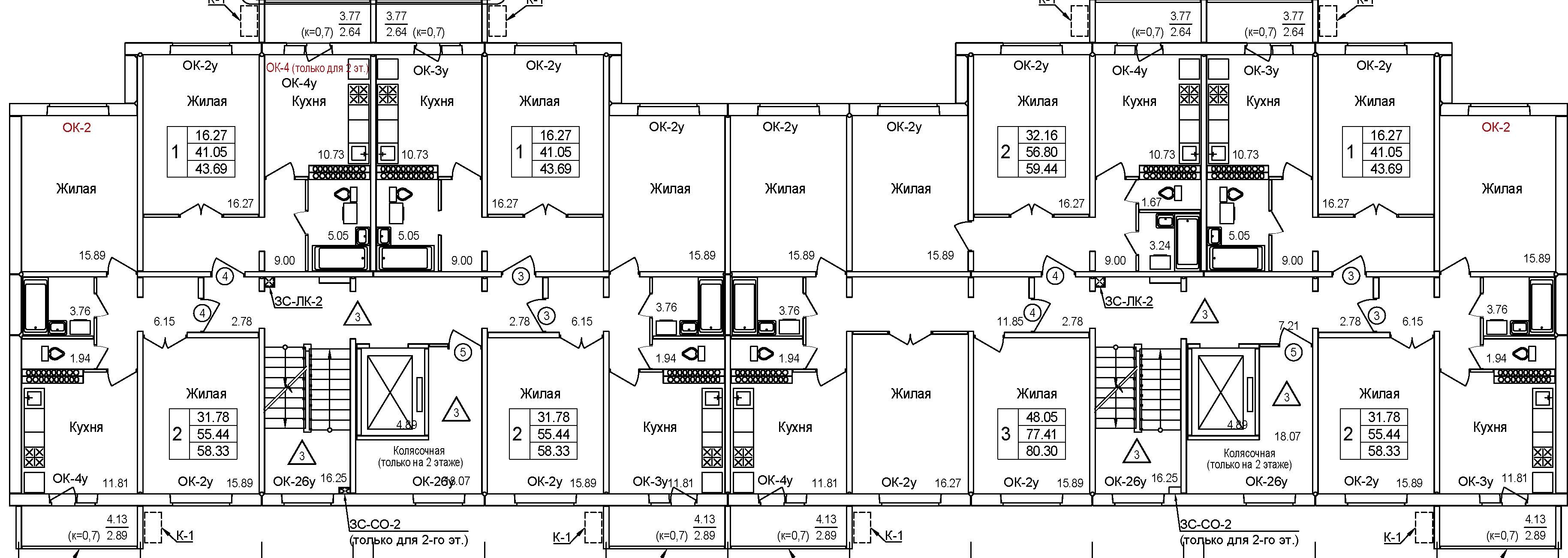 Всего квартир: 1-комнатных – 28, 2-комнатных – 38, 3-комнатных – 10. Высота этажа – 2,8 м.
